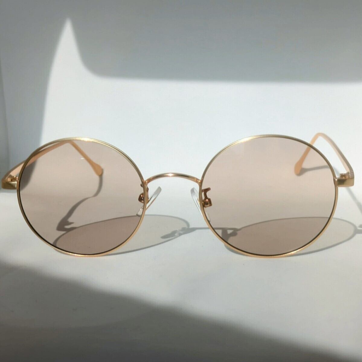調光 メタルラウンド オーバル サングラス スムースゴールド クリア ブラウンレンズ