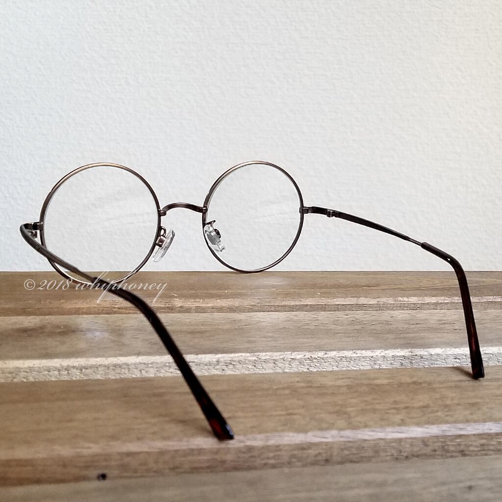丸眼鏡 ブロンズフレーム だて眼鏡 クリアレンズ 50mm