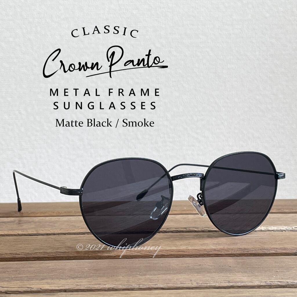 サングラス ラウンドメタルクラウンパント マットブラックフレーム スモークレンズ
