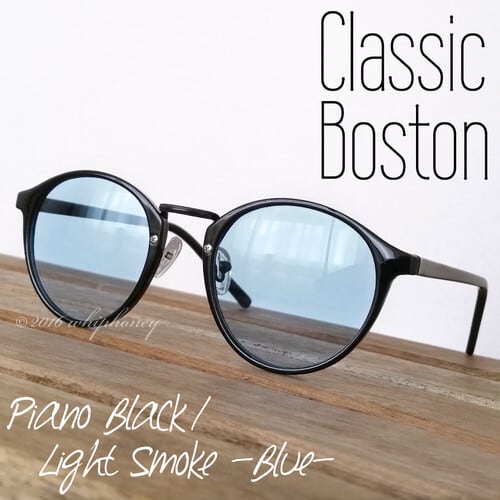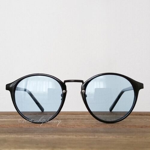 アウトレット サングラス ラウンドボストン だて眼鏡 ピアノブラックフレーム ライトブルーレンズ