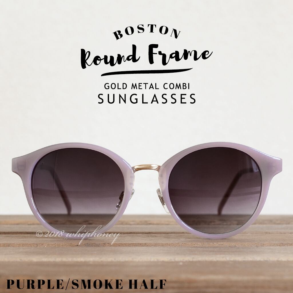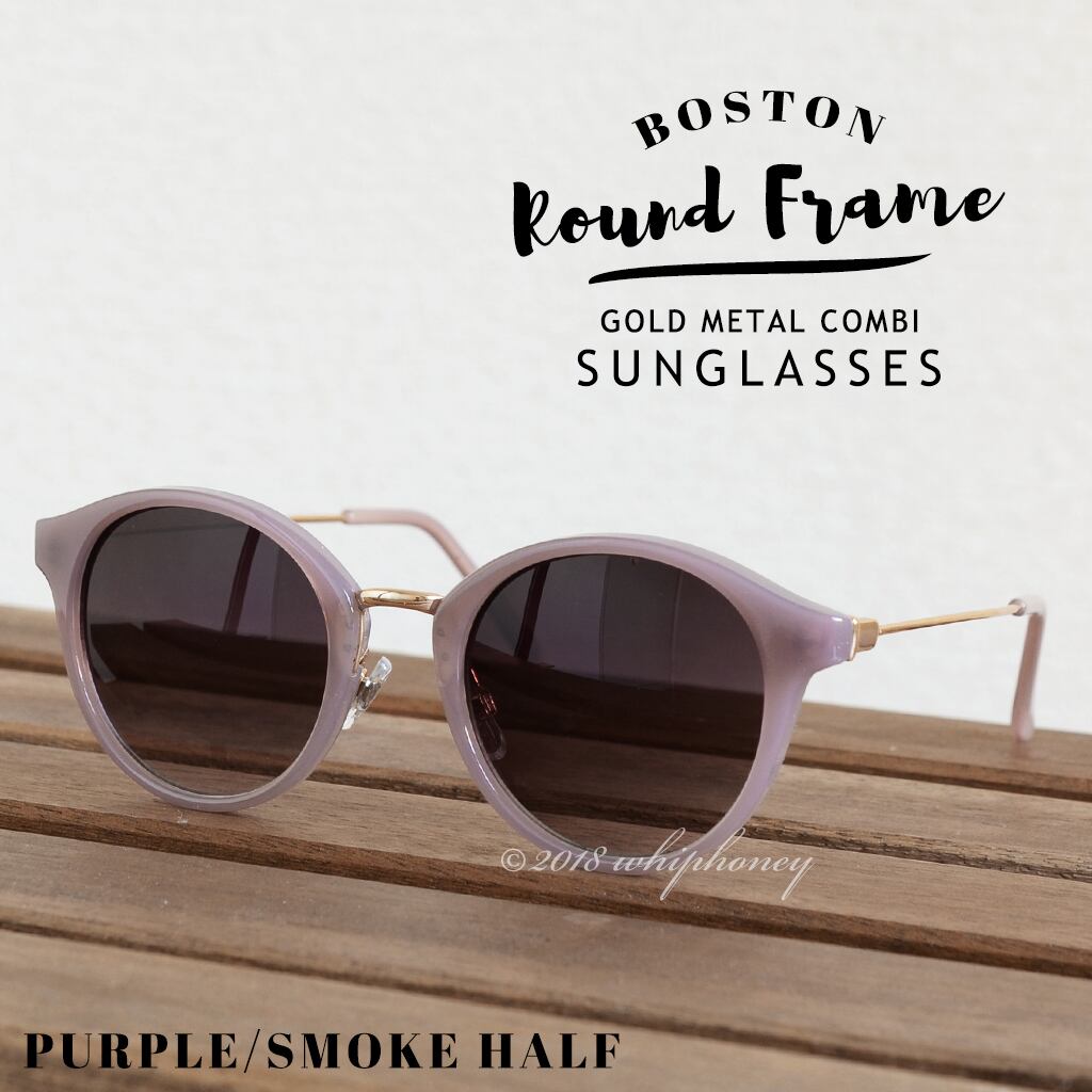 アウトレット サングラス ラウンドボストン だて眼鏡 ヌードパープルコンビフレーム ハーフ スモーク