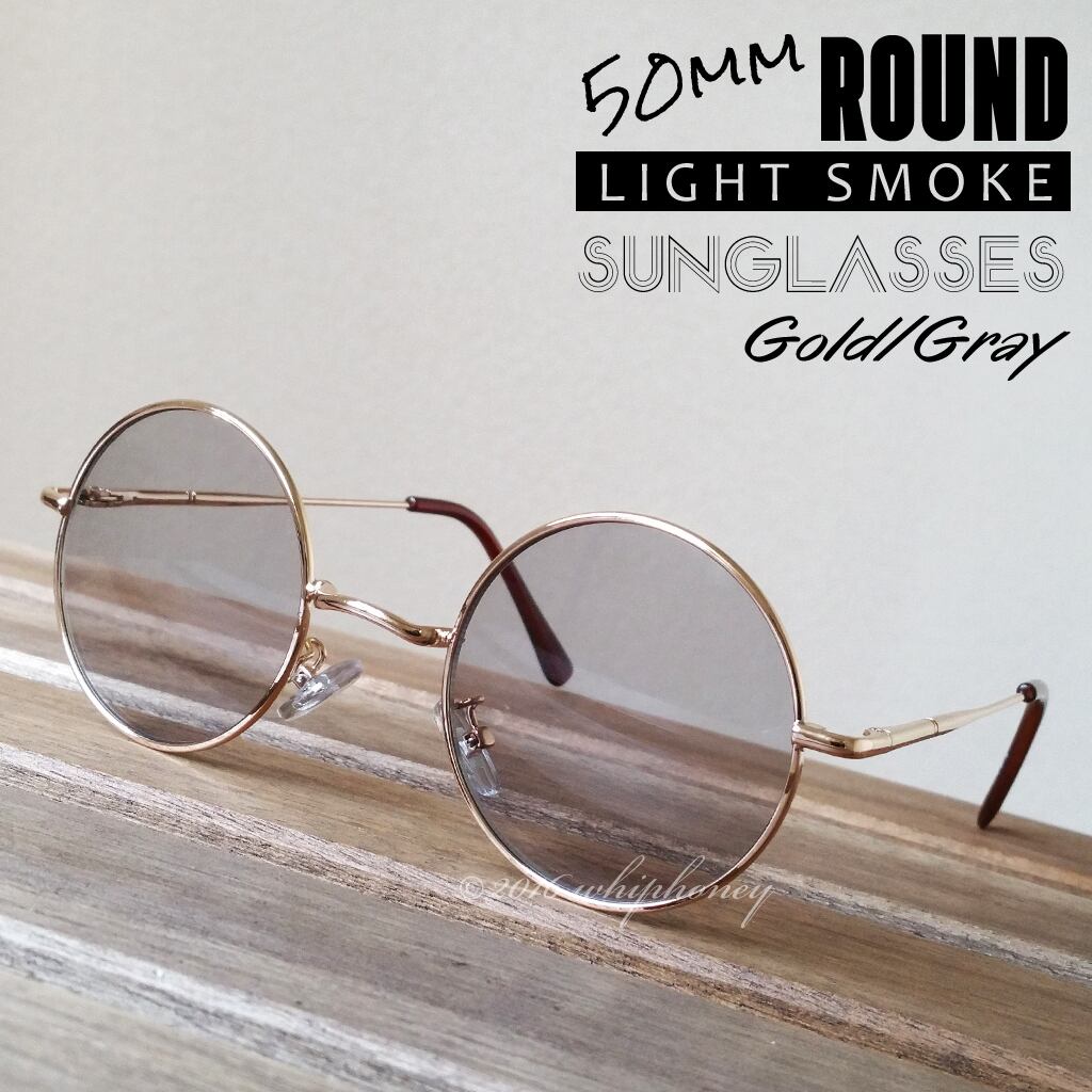 アウトレット サングラス ゴールドフレーム 丸眼鏡 だて眼鏡 ライトグレーレンズ