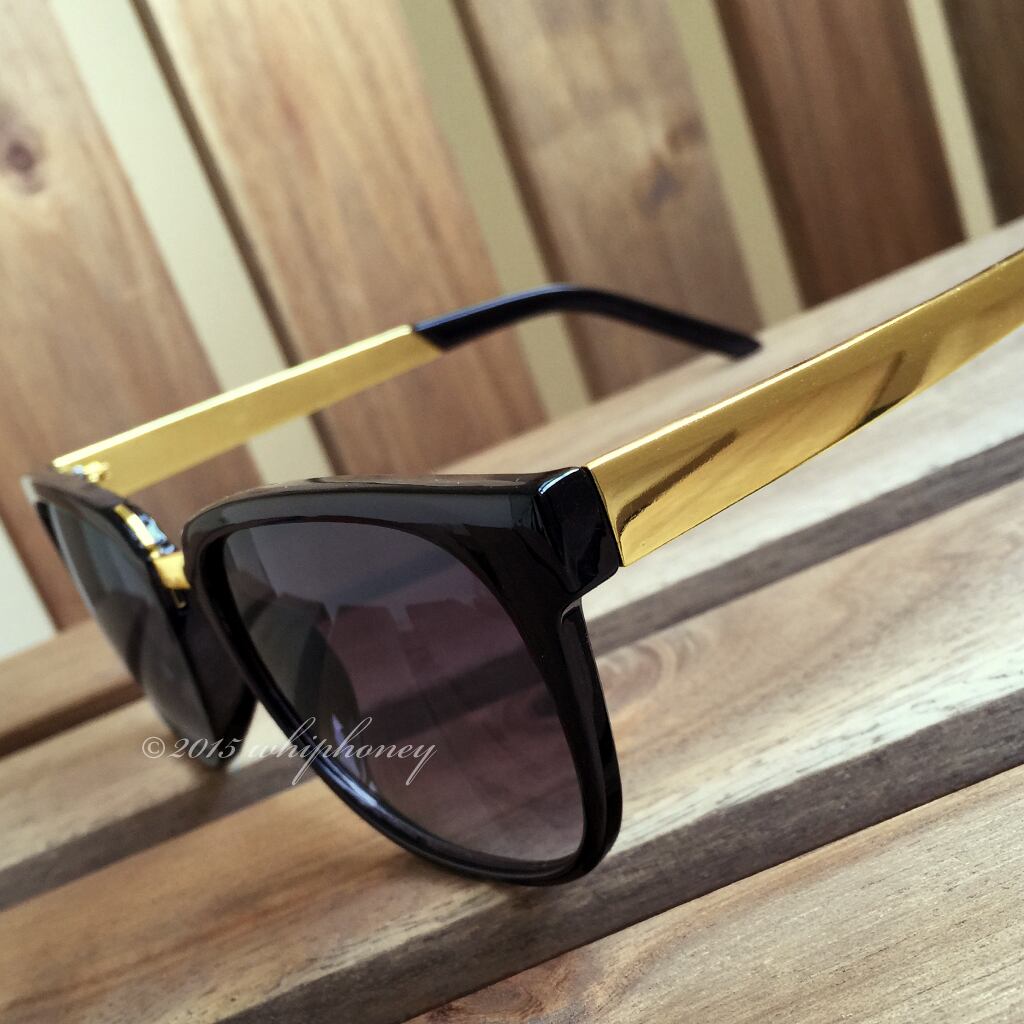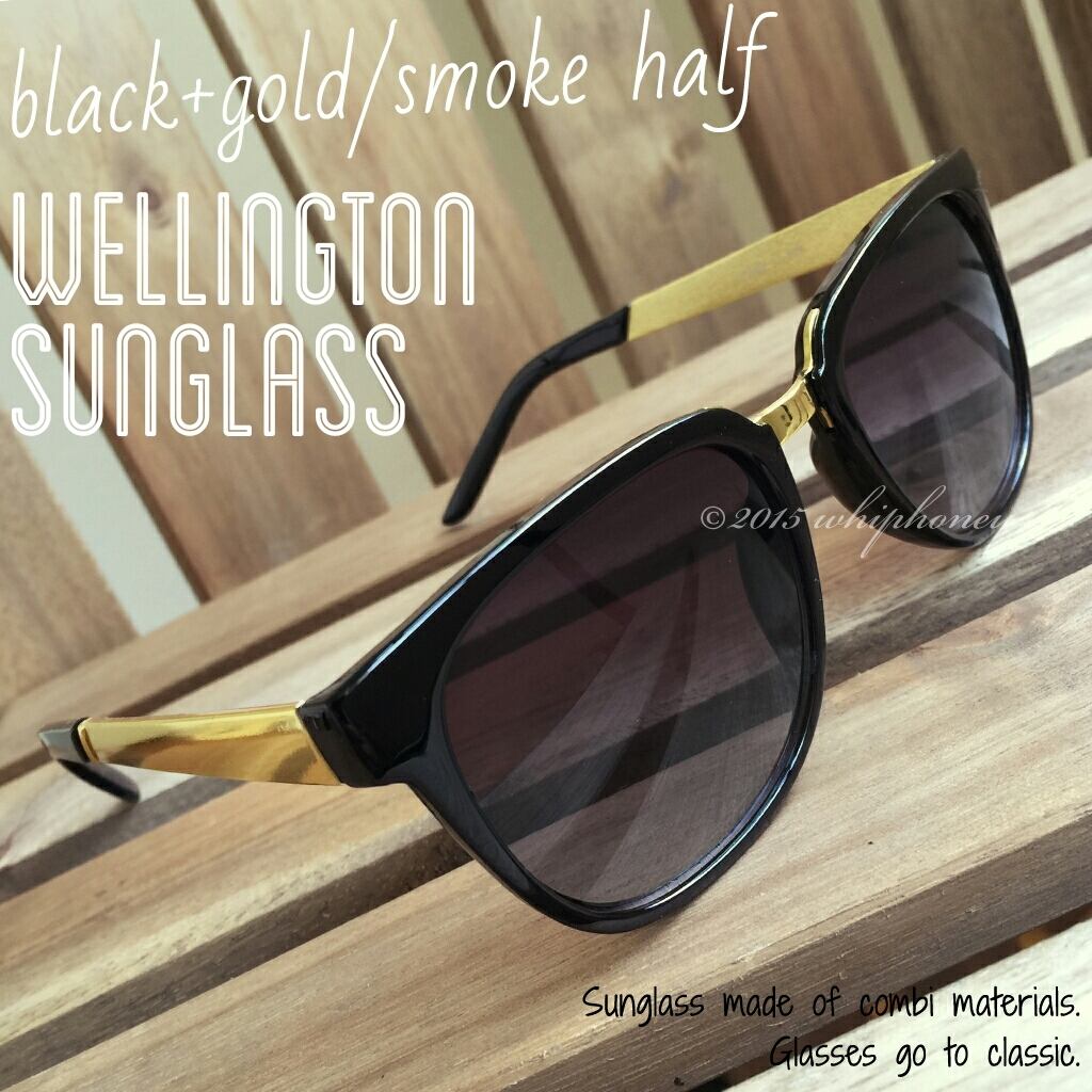 アウトレット ウェリントンだて眼鏡 ブラックフレーム ゴールドコンビメガネフレーム スモークレンズサングラス