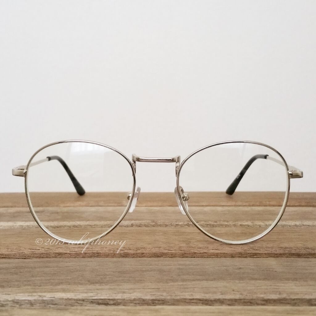 メタル ボストン眼鏡 シルバーフレーム クリアレンズ サングラス