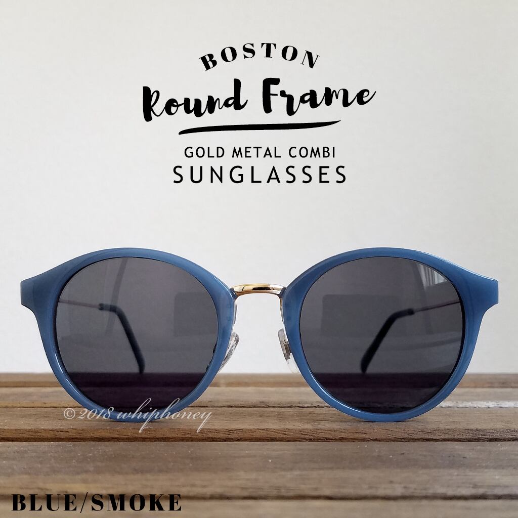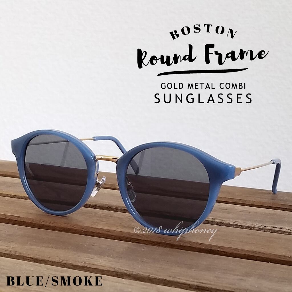アウトレット ラウンドボストン眼鏡 ヌードブルーコンビフレーム スモーク サングラス