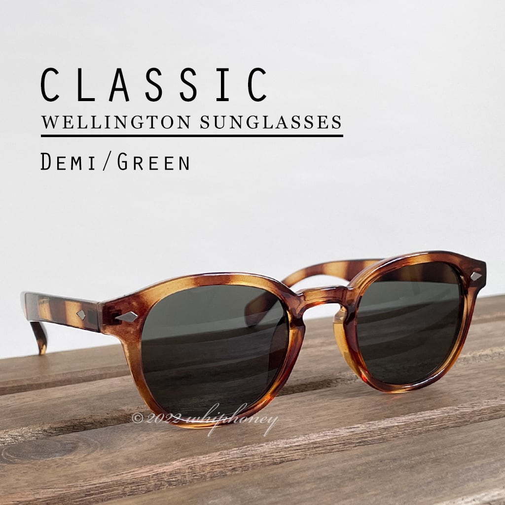 サングラス ラウンデッドウェリントン デミブラウンフレーム グリーンスモークレンズ
