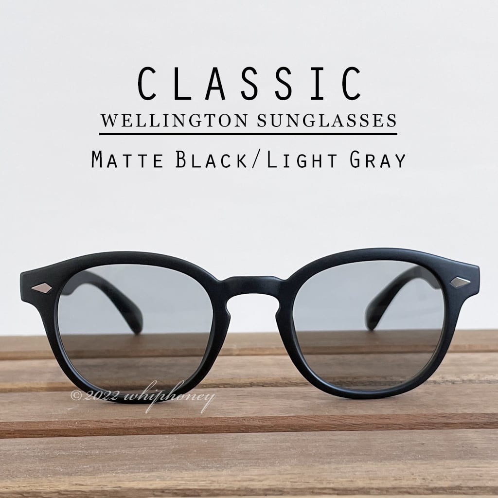 サングラス ラウンデッド ウェリントン マットブラックフレーム ライトグレーレンズ