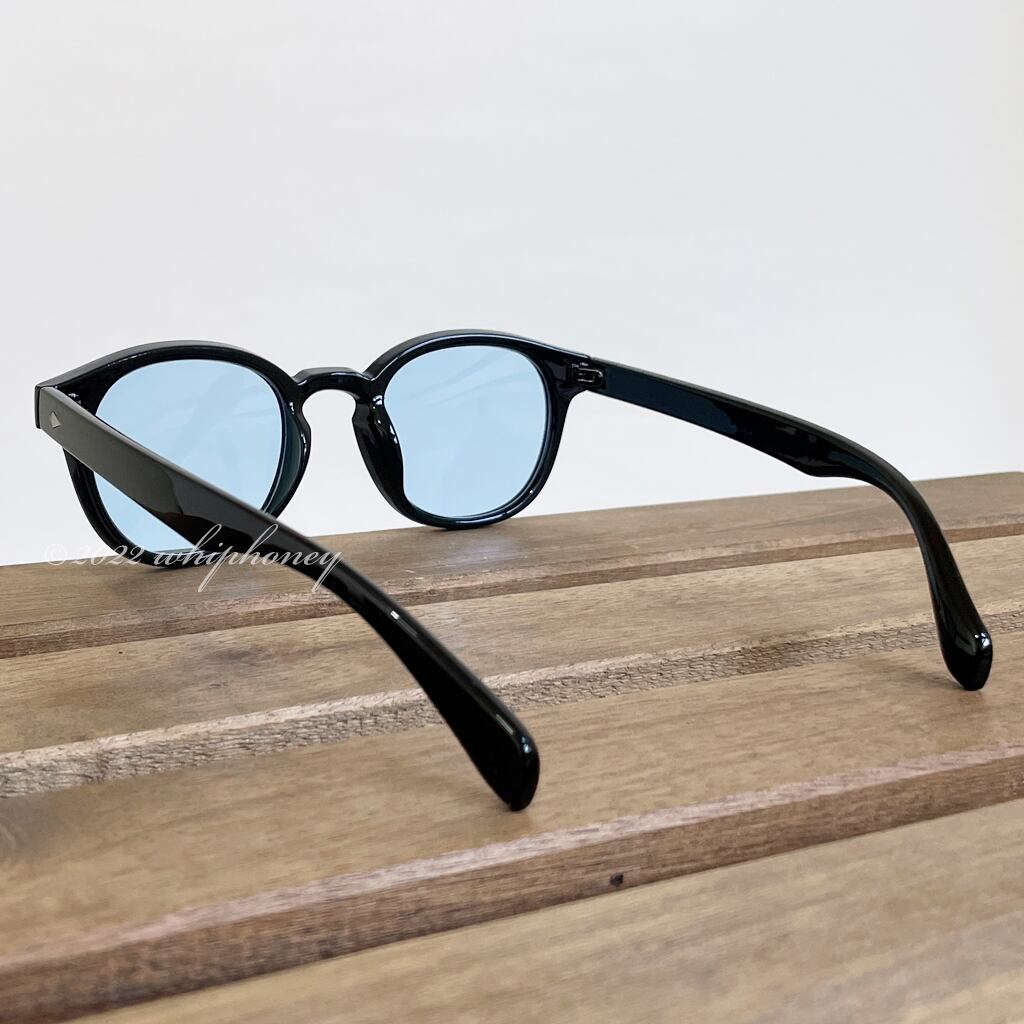 サングラス ラウンデッドウェリントン ピアノブラックフレーム ライトブルーレンズ
