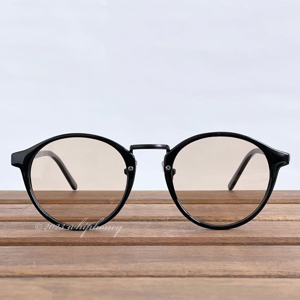 ラウンドボストンだて眼鏡 ピアノブラックフレーム ライトブラウンレンズ サングラス