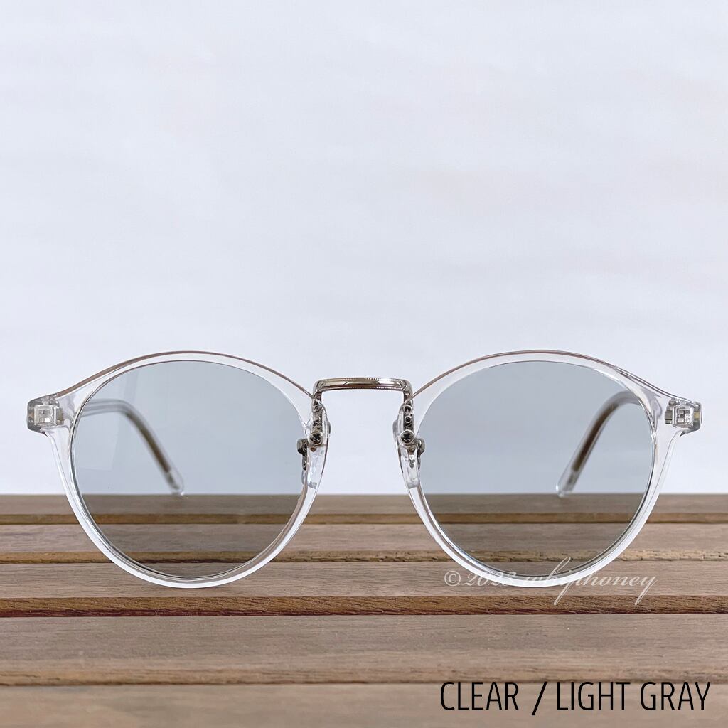 サングラス ラウンドボストン クリアフレーム ライトグレーレンズ