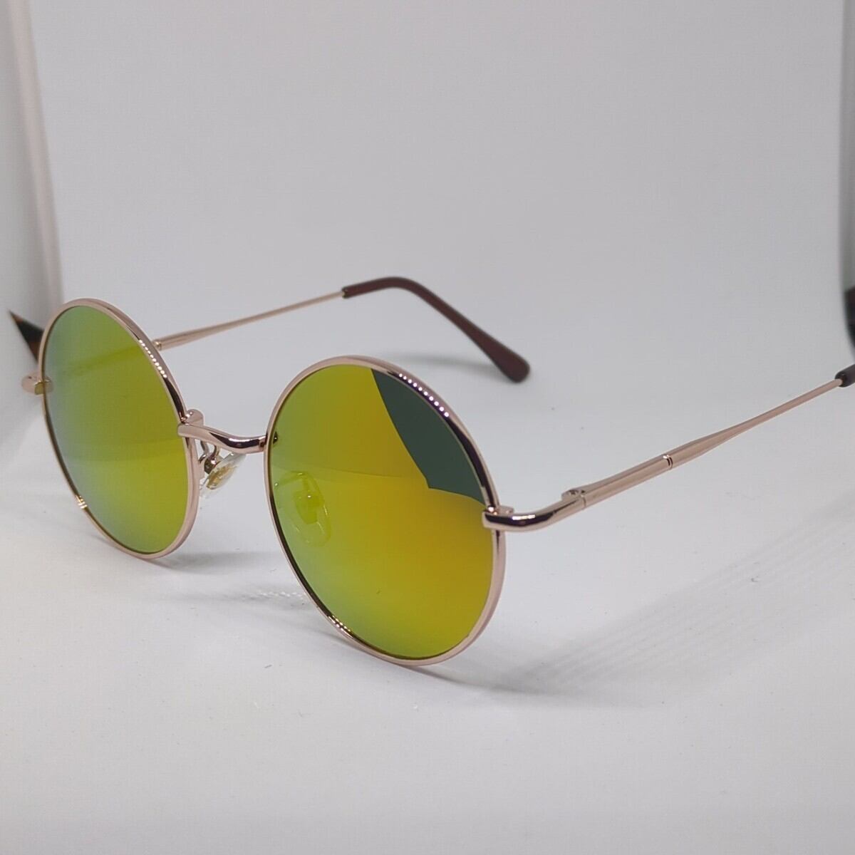 アウトレット ゴールドフレーム 丸眼鏡 レッドミラーレンズ サングラス