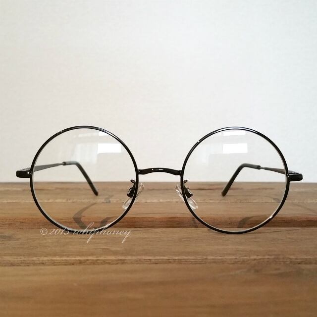 サングラス トレンドの50mm丸メガネUVだてめがね ブラックフレーム クリア