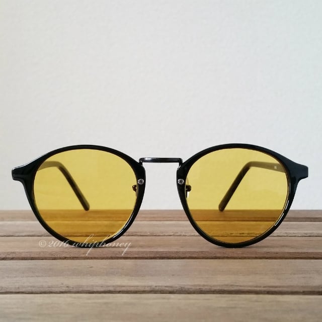 サングラス ラウンドボストンだて眼鏡 ピアノブラックフレーム ライトスモークイエロー