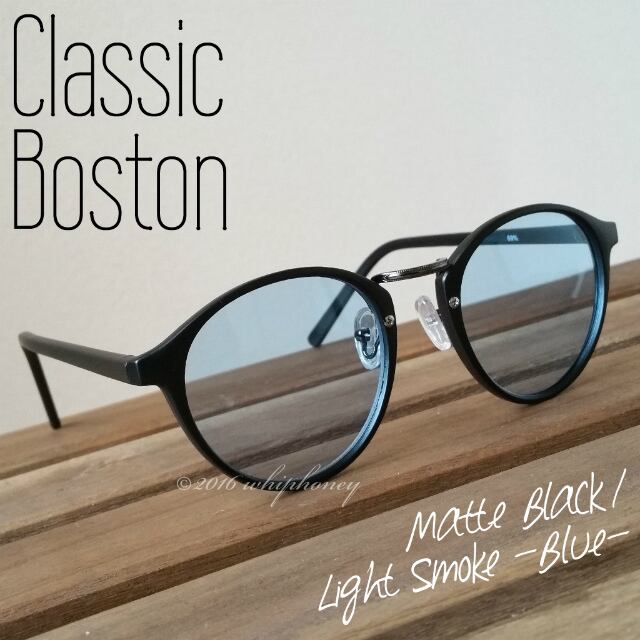 サングラス ラウンドボストンだて眼鏡マットブラック ライト ブルーレンズ