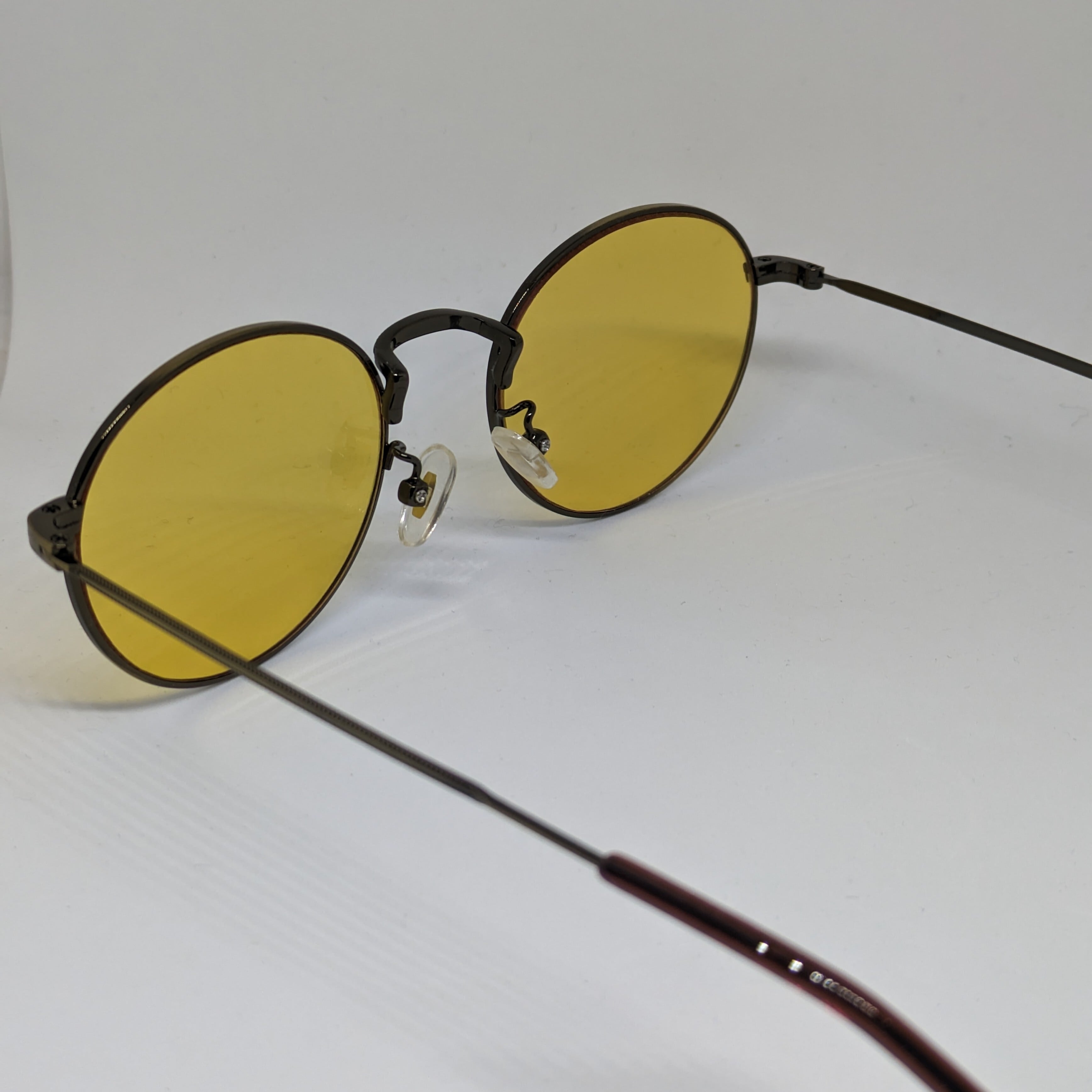 サングラス メタルオーバル ボストン ブロンズフレーム イエロースモークレンズ